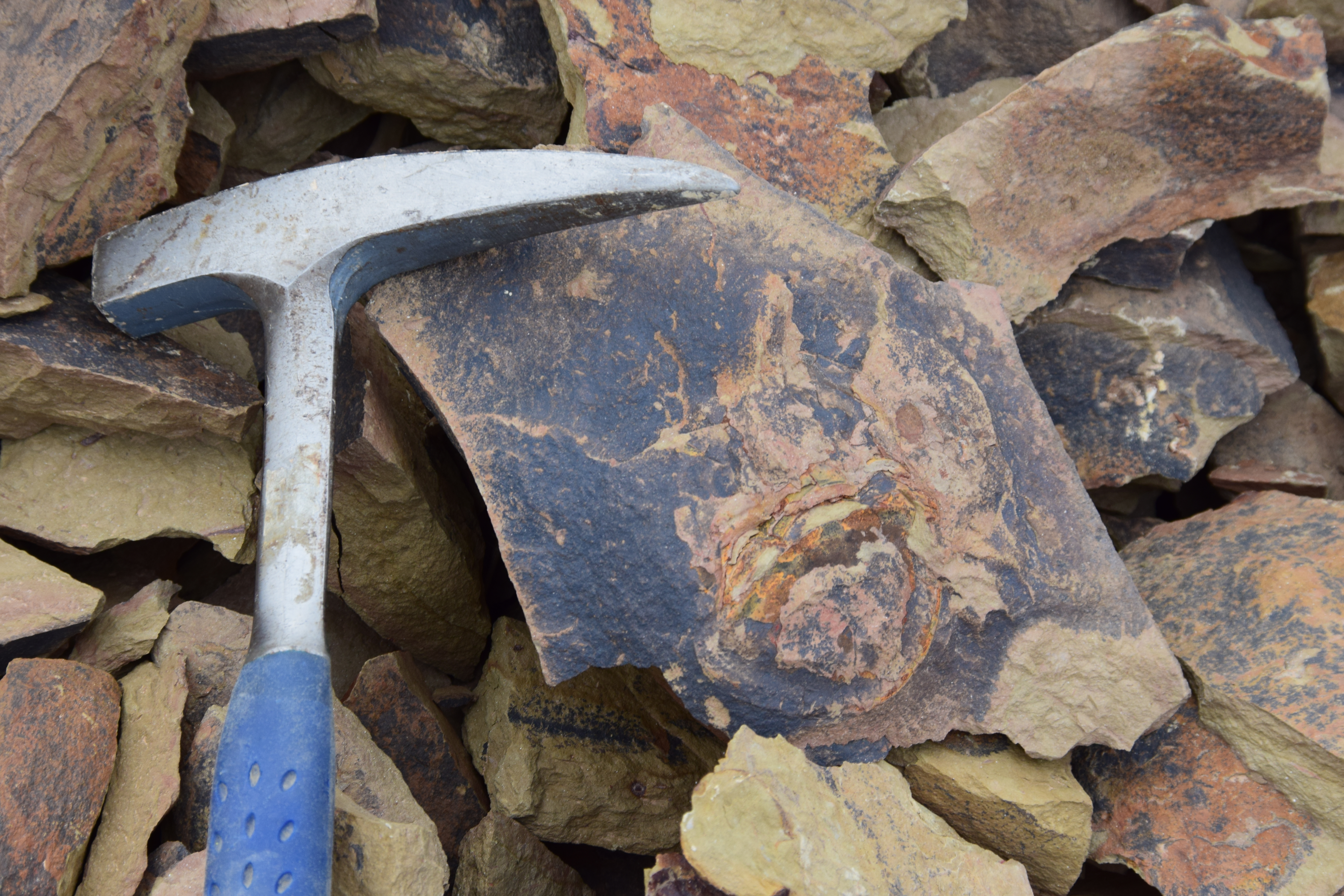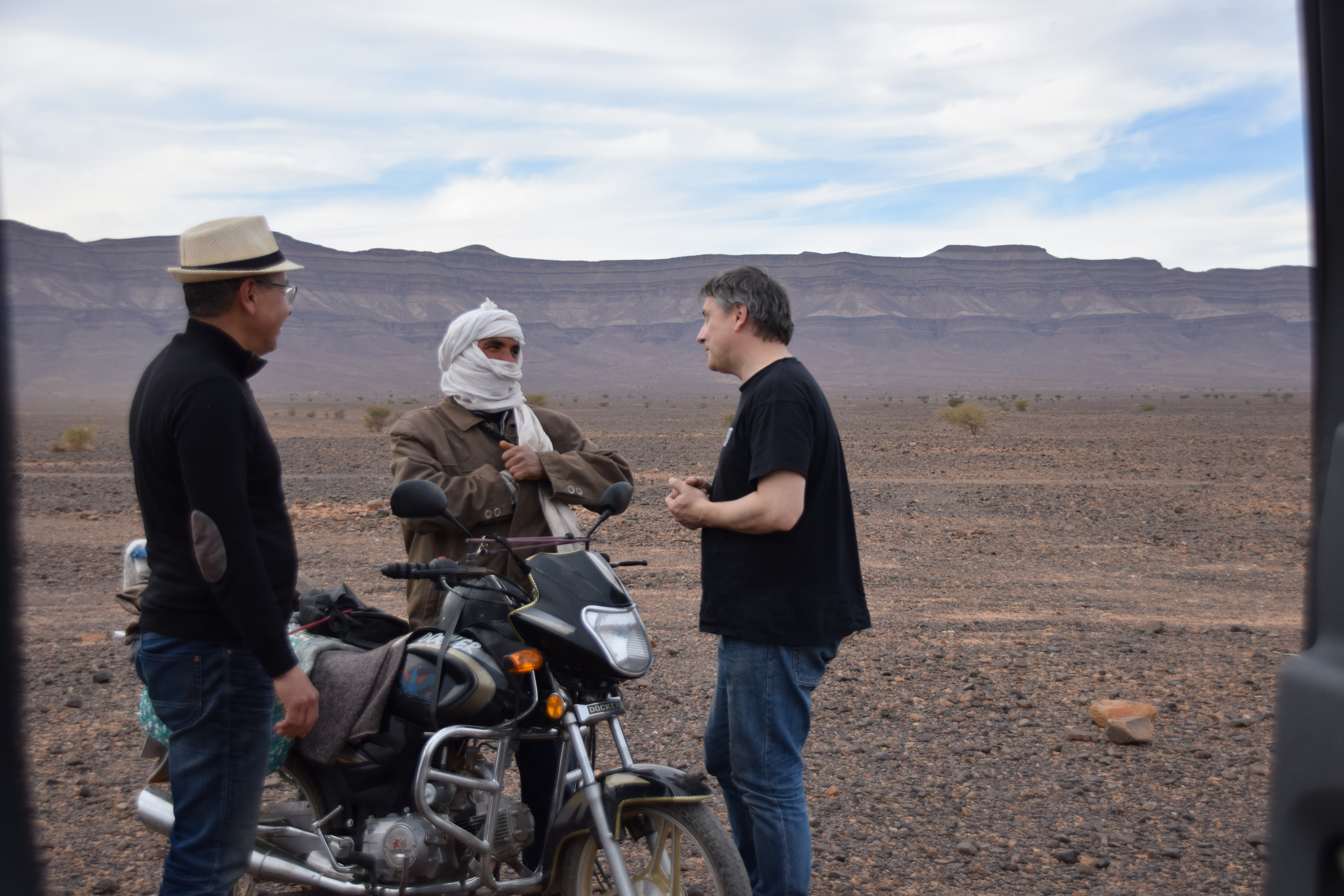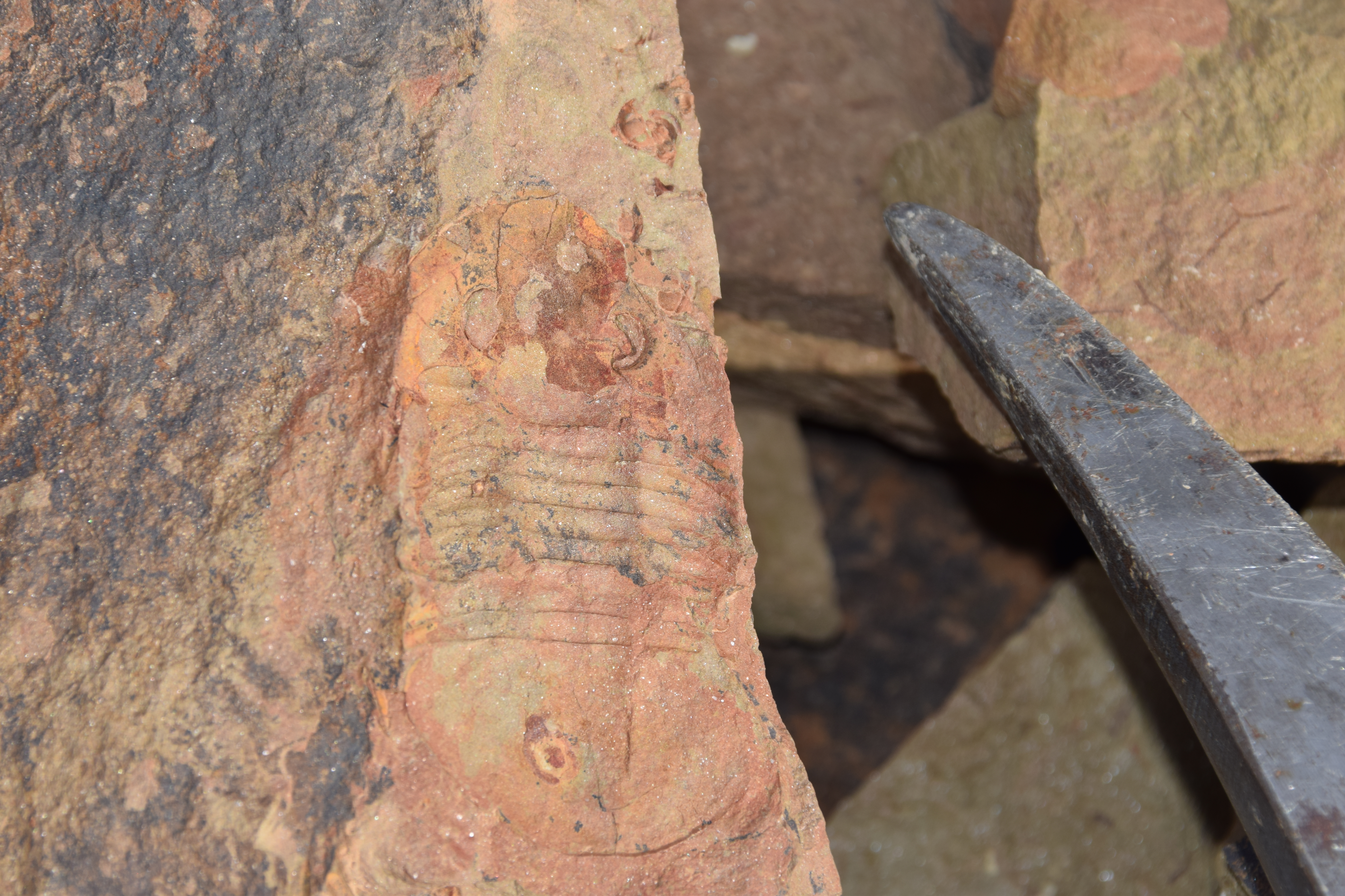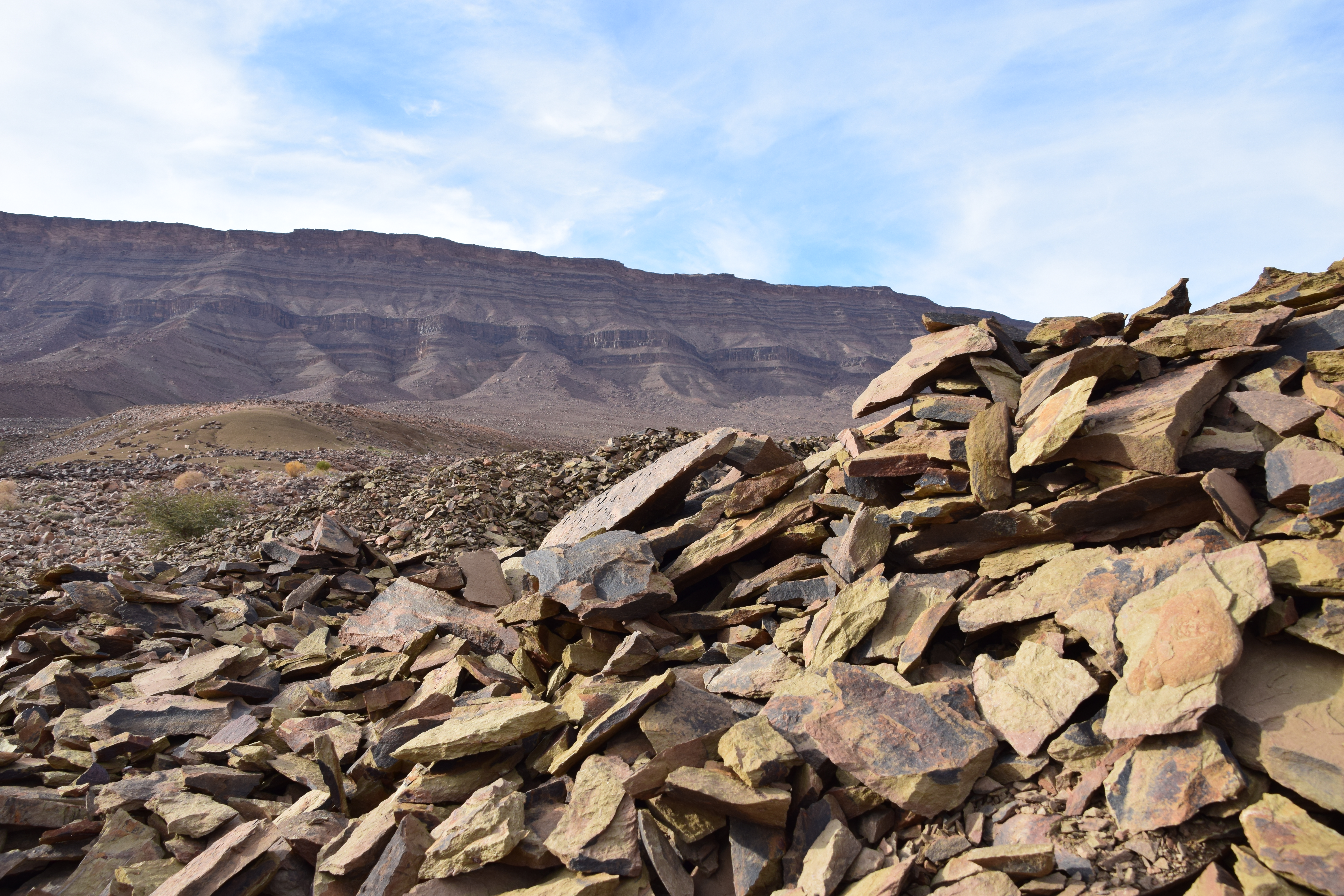 A highlight of the trip was examining the Fezouata Formation at You Izargane, where participants were able to examine the late Tremadocian (A. murrayi zone) portion of the Fezouata replete with trilobites, incredibly well preserved graptolites, and the lagerstatte bearing layers. In the afternoon, we visited Jbel Bou Zeroual (with directional assistance from a local camel shepherd on a motorbike), the Floian section of the Fezouata Formation. Here we collected many trilobites, echinoderms, and other typical Ordovician shelly fauna.