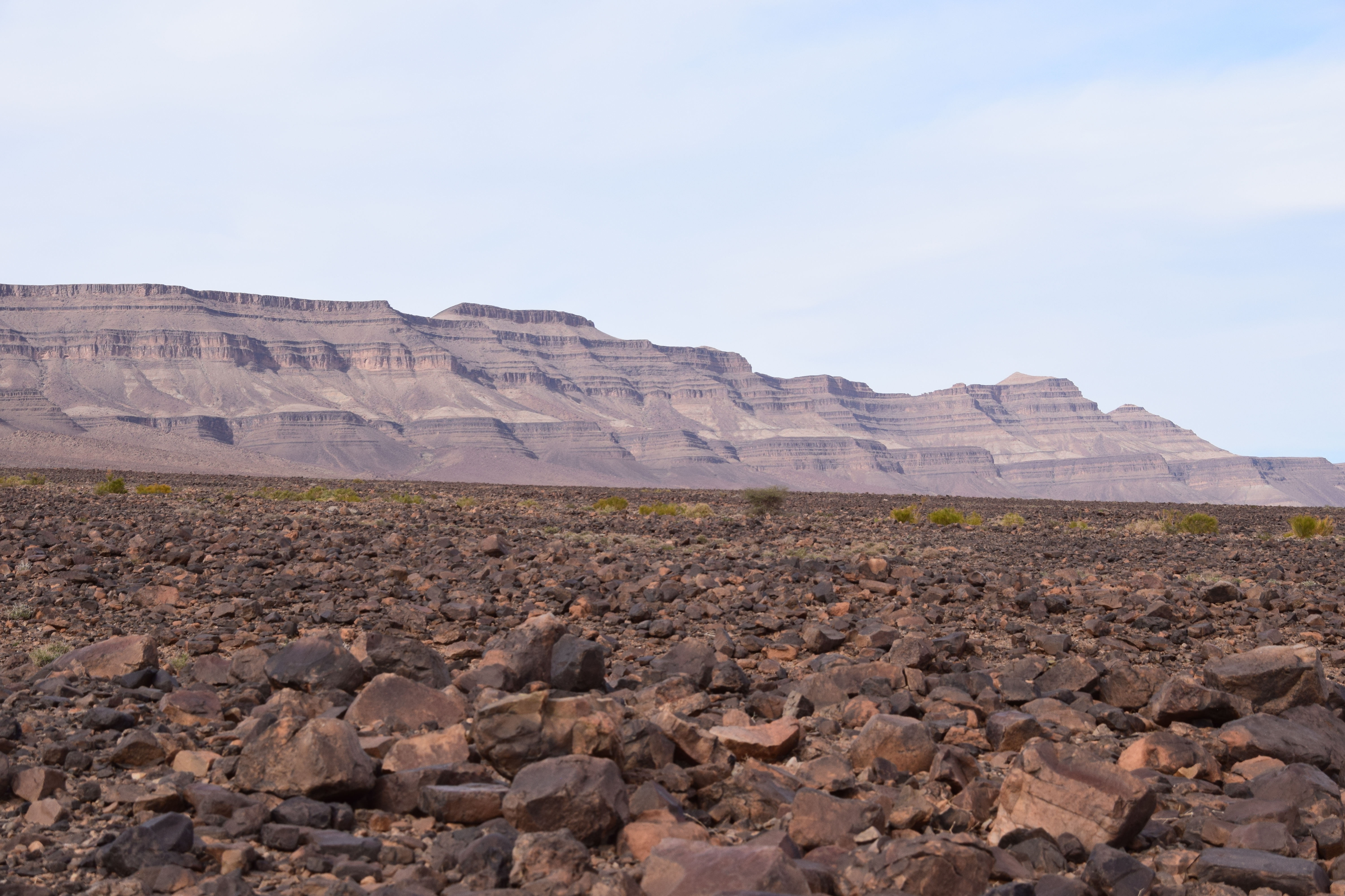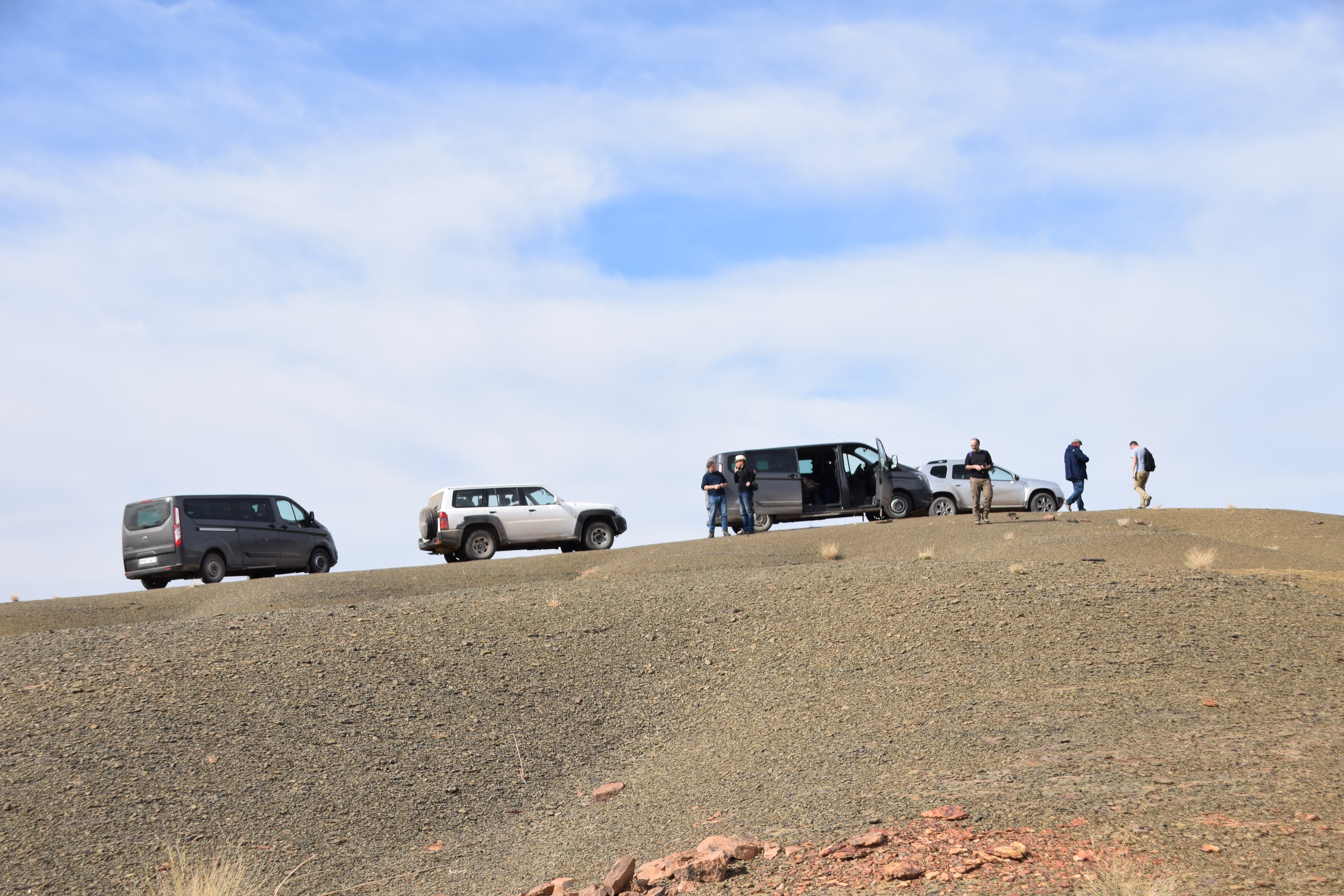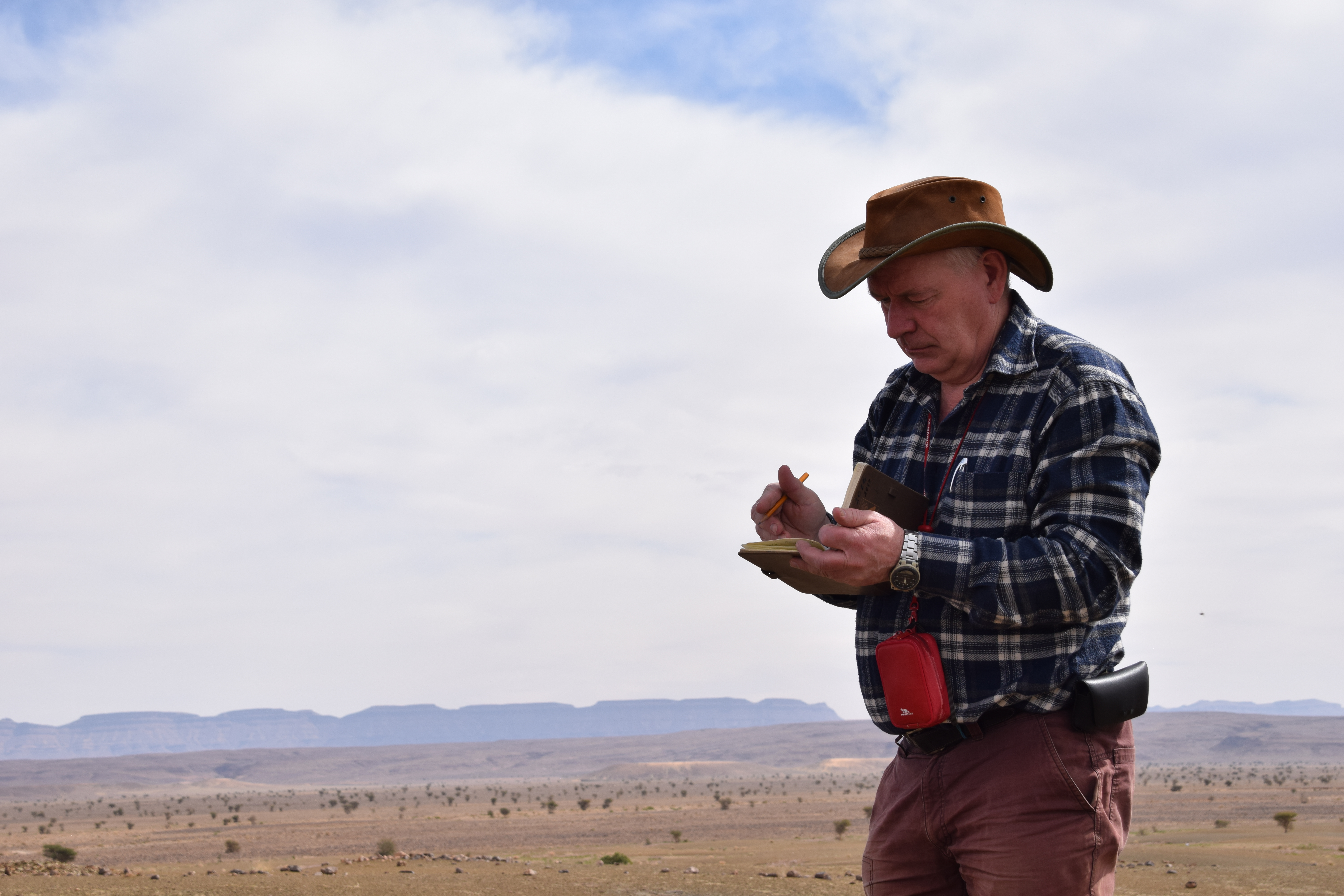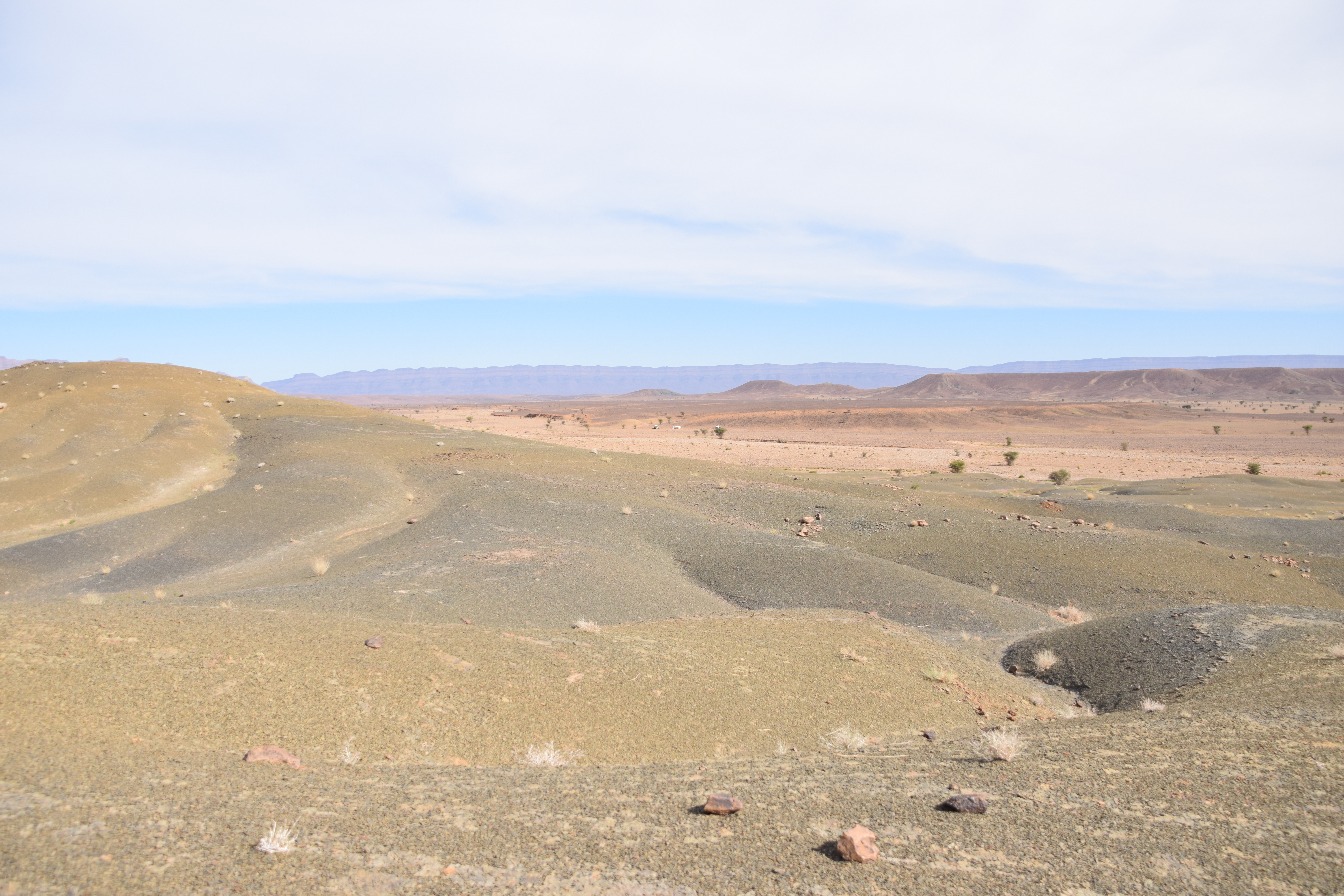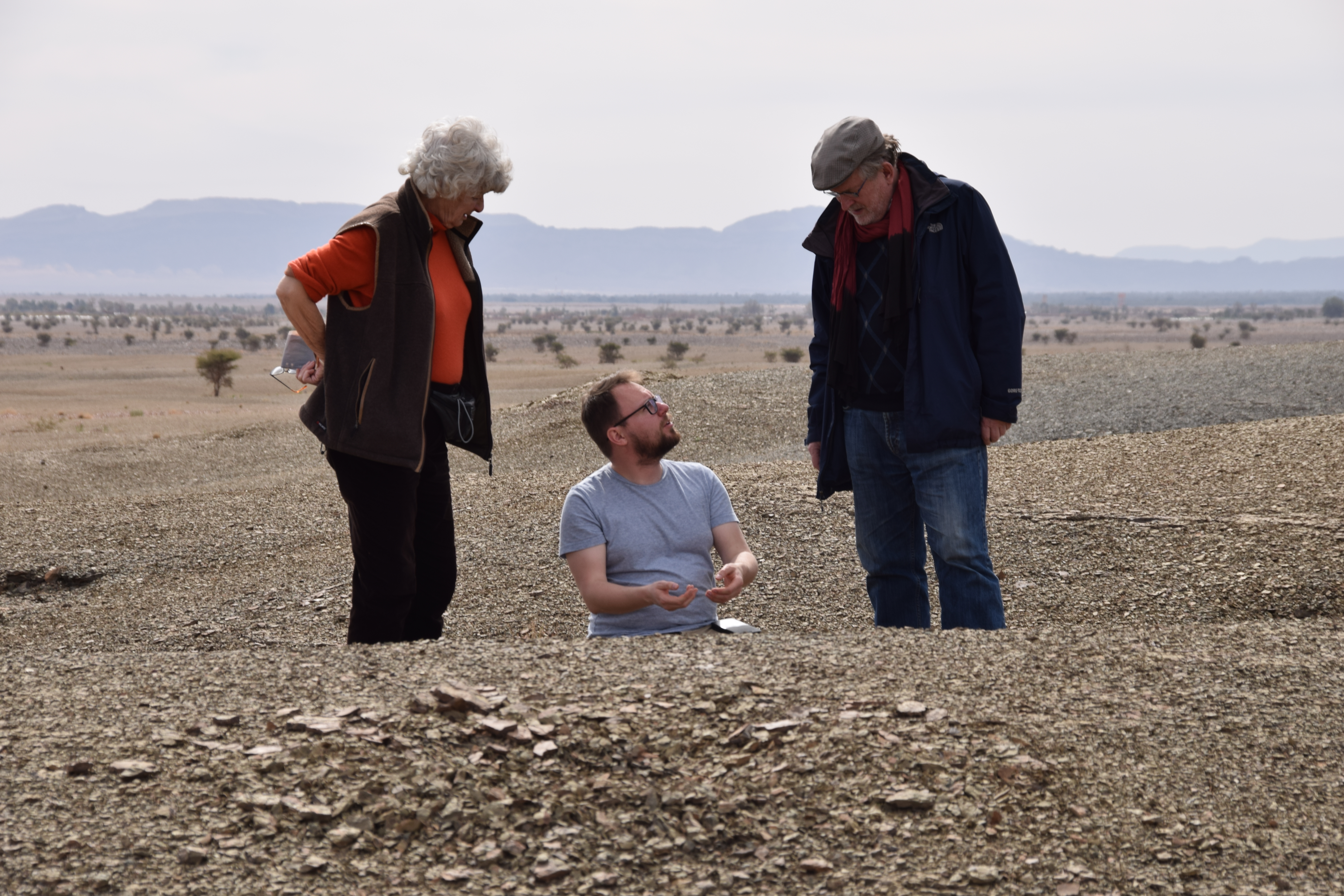 A group of 28 international scientists followed the workshop with a field excursion to the Fezouata Formation that was expertly organized by Bertrand Lefebvre. We crossed the High Atlas Moutains via the Tizi n’Tichka Pass then descended to the Ternata Plain. En route to Zagora, we stopped for an overview of the stratigraphy and structural geology of the Jbel Kissing and the Draa Valley.