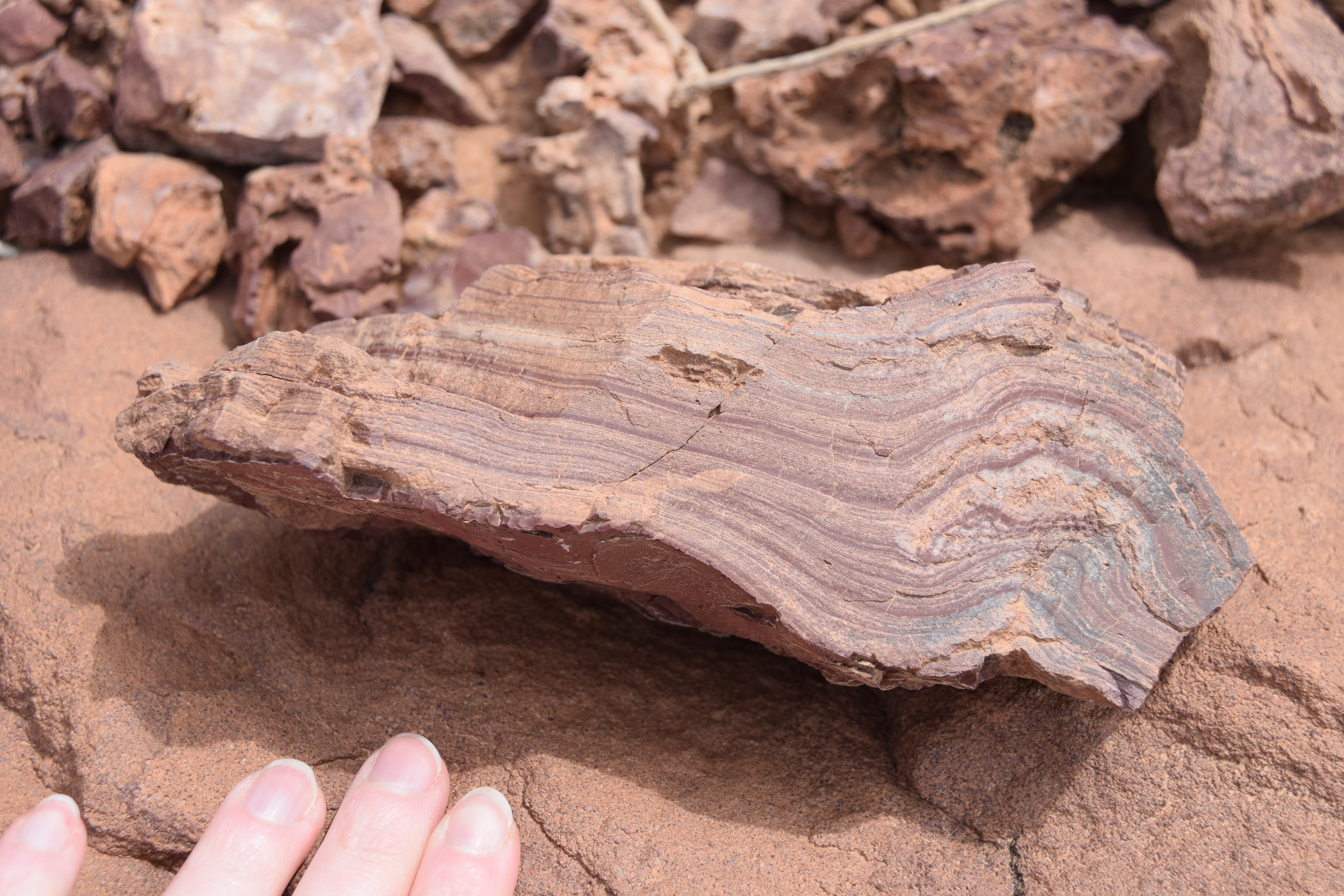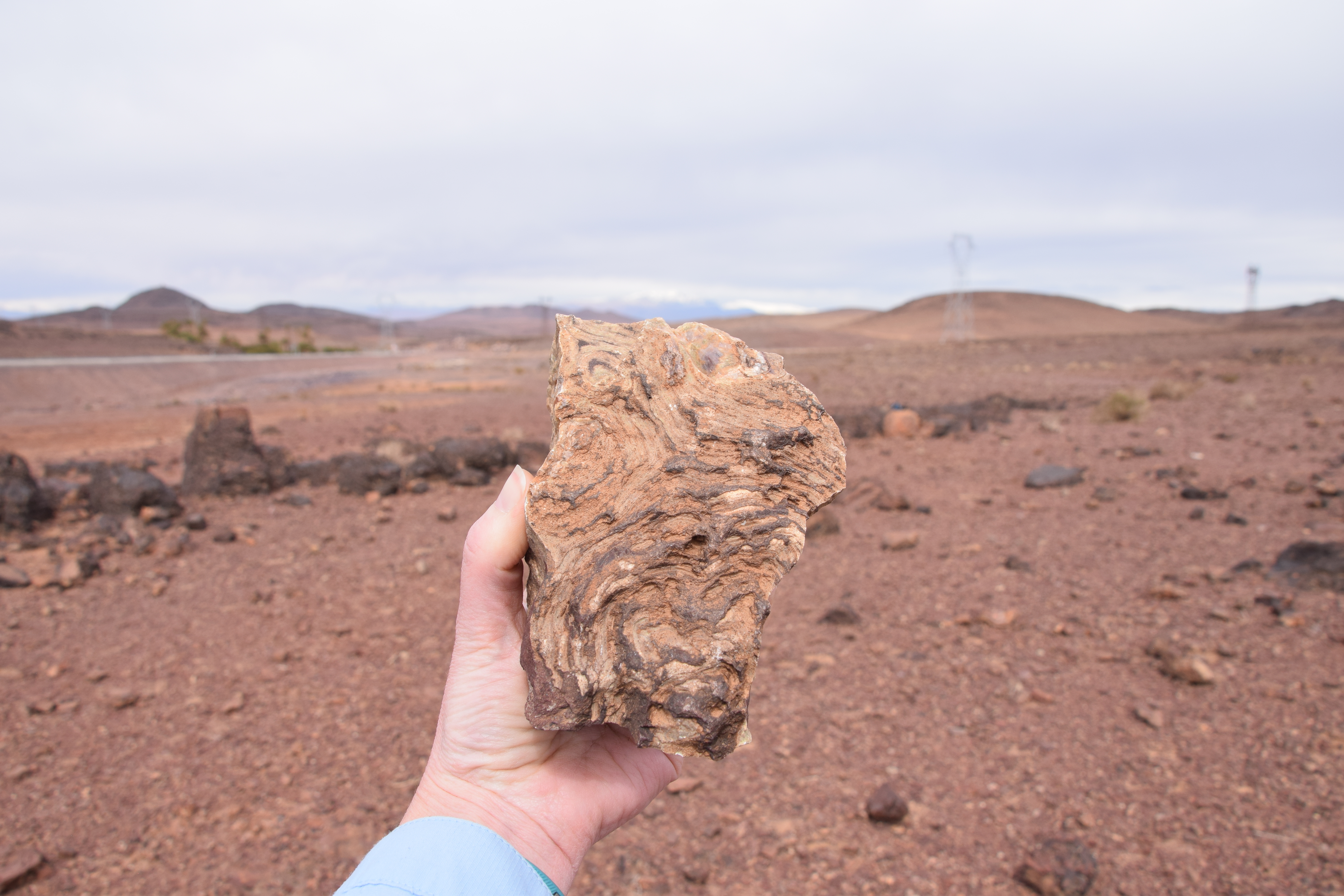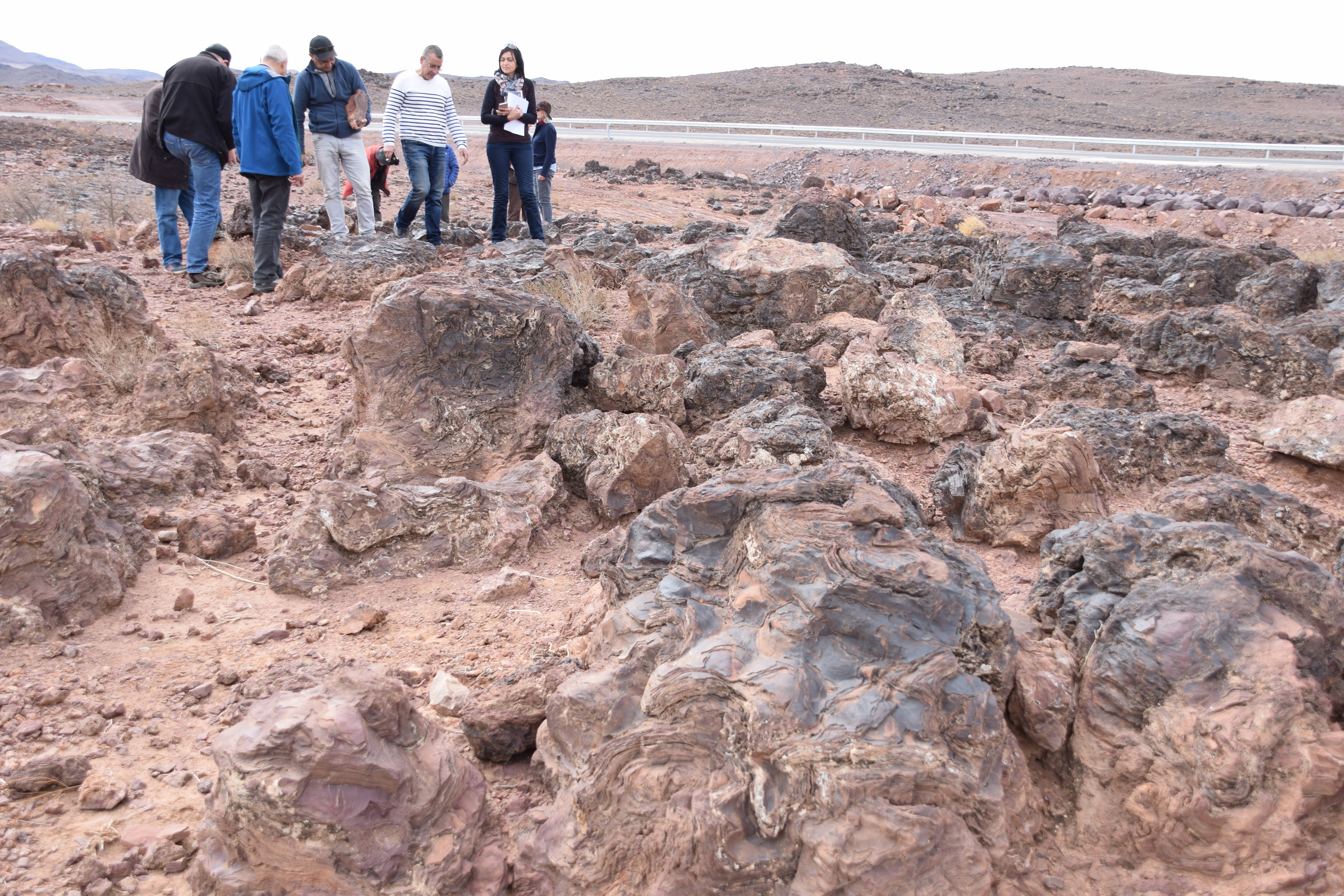On the return drive to Marrekech, the group stopped to examine the spectacular Late Neoproterozoic stromatolites at Amane n’Tourhart.