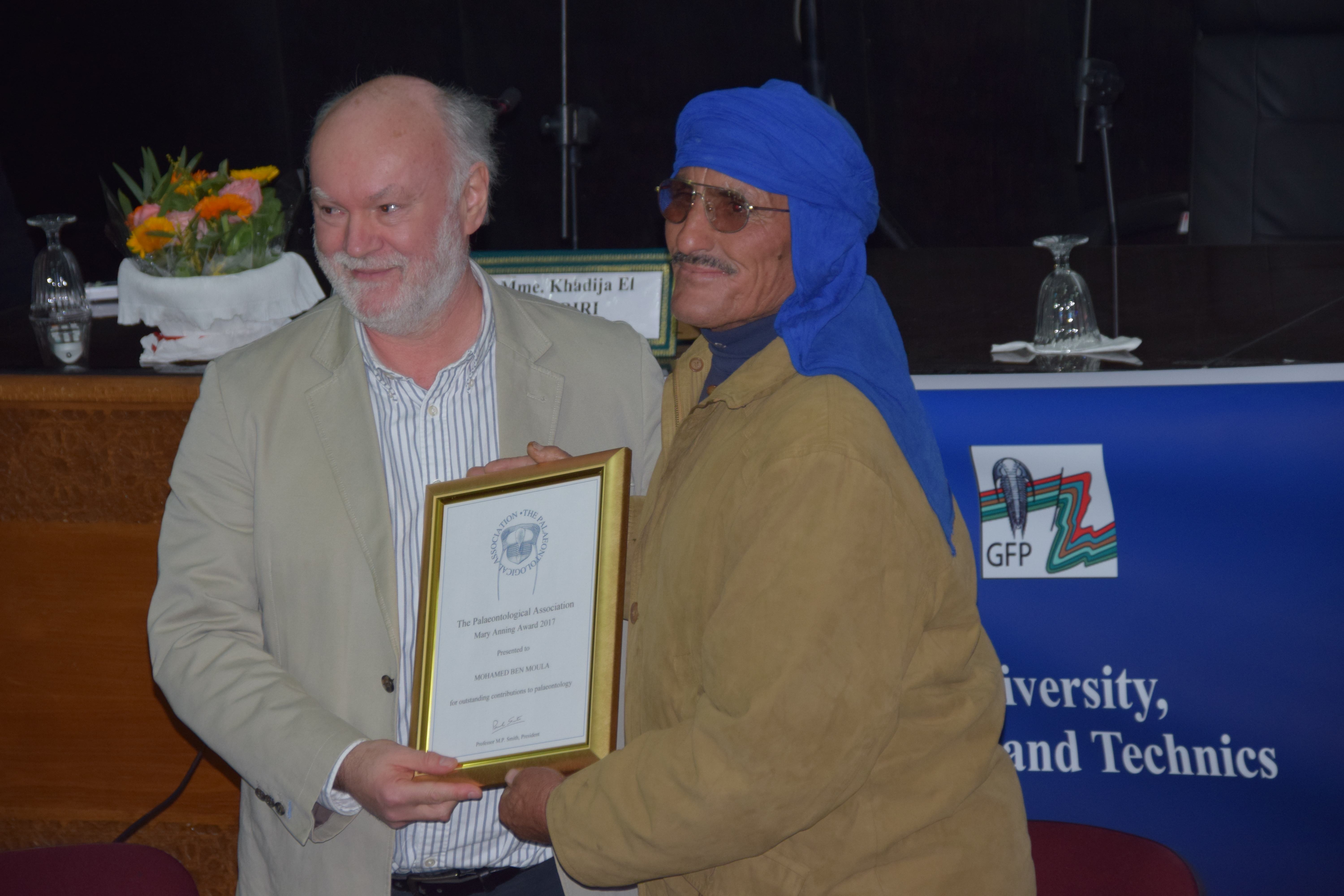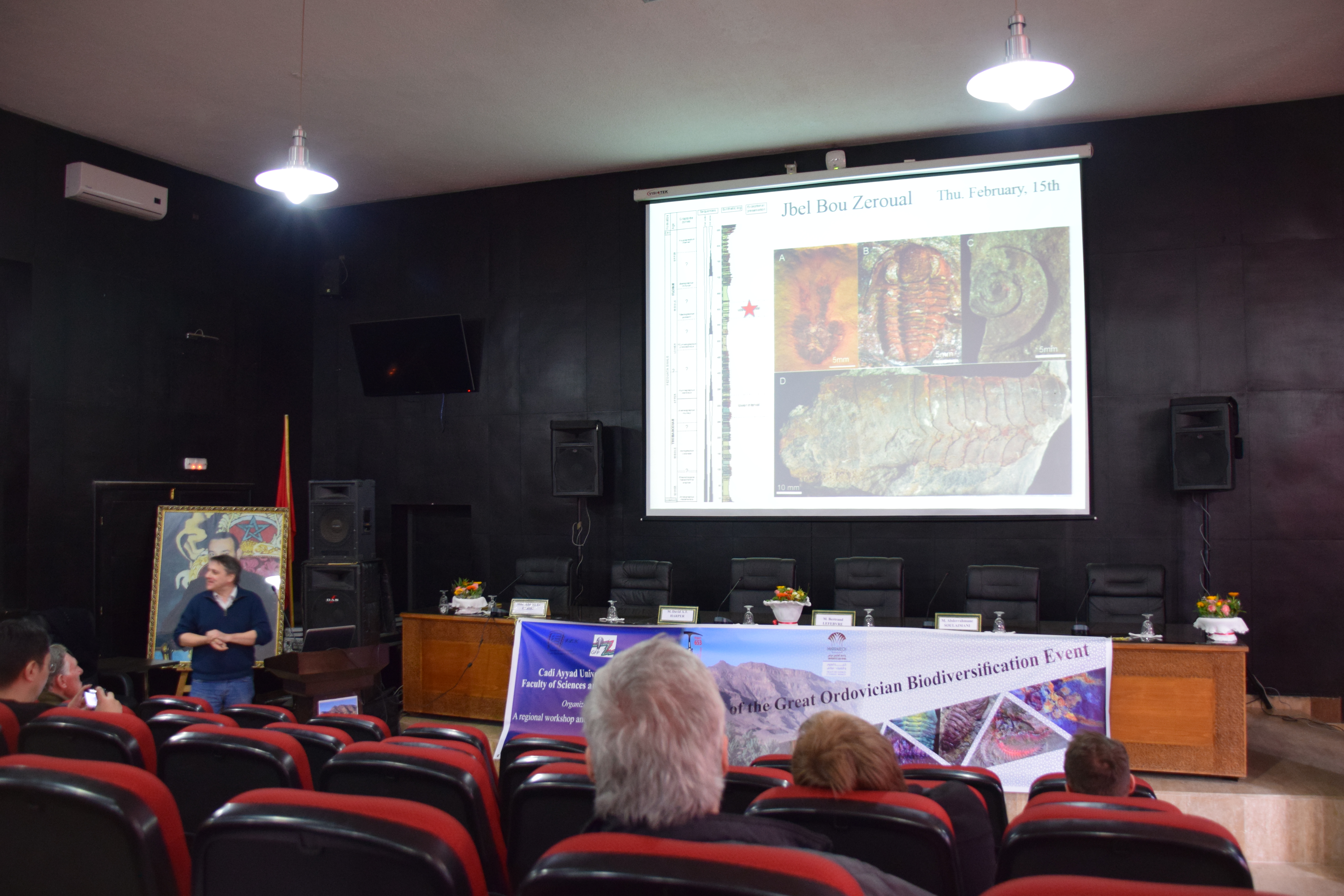 The workshop was an excellent introduction to Ordovician geology and paleontology with a particular focus on Moroccan deposits. Dr. Khadija El Hariri and her associates at Cadi Ayyad University, Faculty of Sciences and Technics did an excellent job organizing the workshop, which was attended by 25 international participants plus 20+ local students. We all enjoyed examining and discussing Fezouata and other specimens, engaging in fruitful discussions during the coffee breaks, and the final musical ceremony. It was an honor to be joined by Mohommad “Ou Said” Ben Moula, the discoverer of the Fezouata Biota, as he received the Mary Anning Award from the Palaeontological Association.